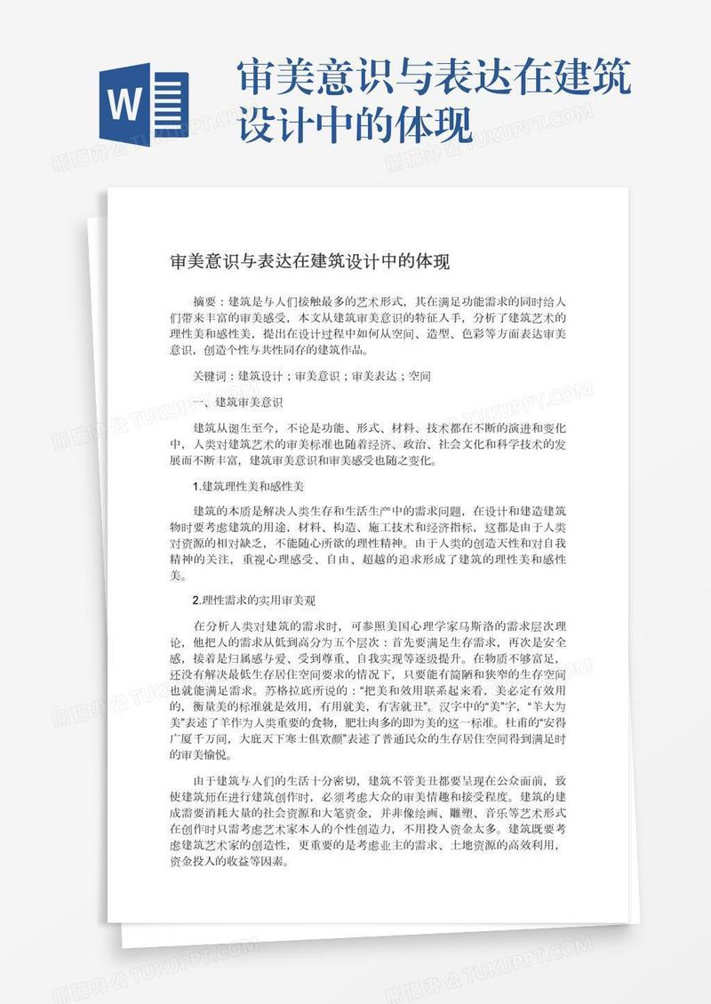 本作品为审美意识与表达在建筑设计中的体现, 编号:5a52ovwnka, 格式为 docx, 大小1 MB, 本作品下载后,先解压,解压之后用推荐软件 Word(2010) 打开, 然后进行编辑功能。