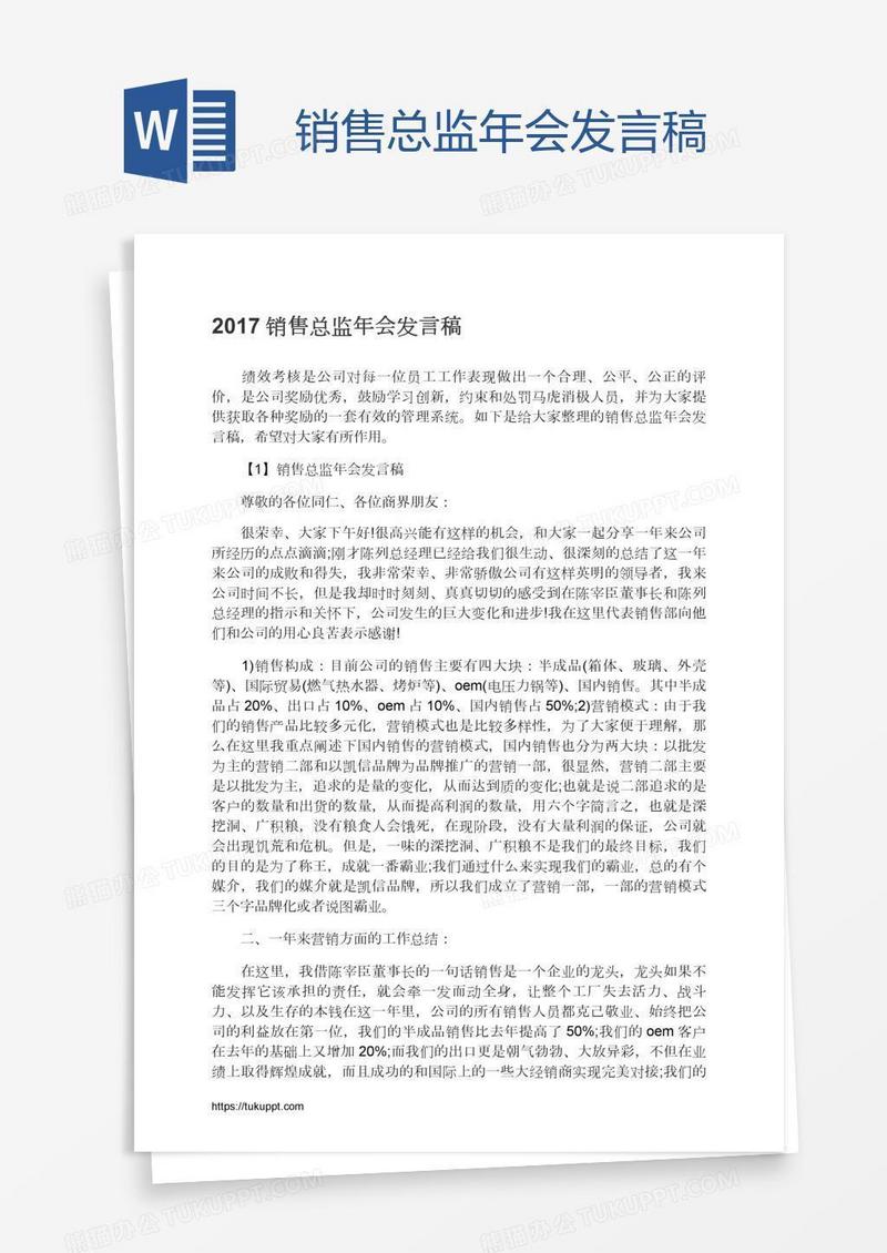 本作品为销售总监年会发言稿, 编号:6187427g69, 格式为 docx, 大小1 MB, 本作品下载后,先解压,解压之后用推荐软件 Word(2010) 打开, 然后进行编辑功能。