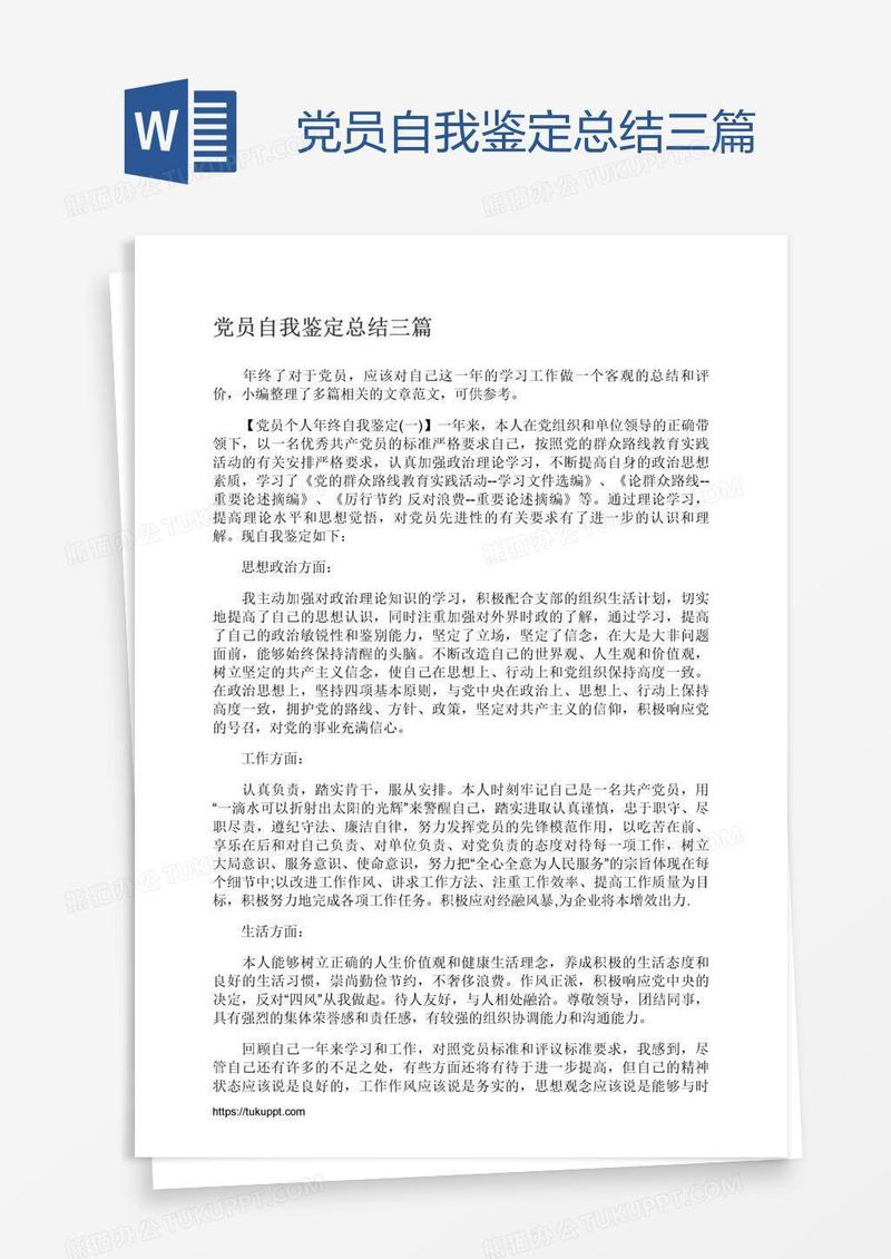 本作品为党员自我鉴定总结三篇, 编号:61874880j9, 格式为 docx, 大小1 MB, 本作品下载后,先解压,解压之后用推荐软件 Word(2010) 打开, 然后进行编辑功能。