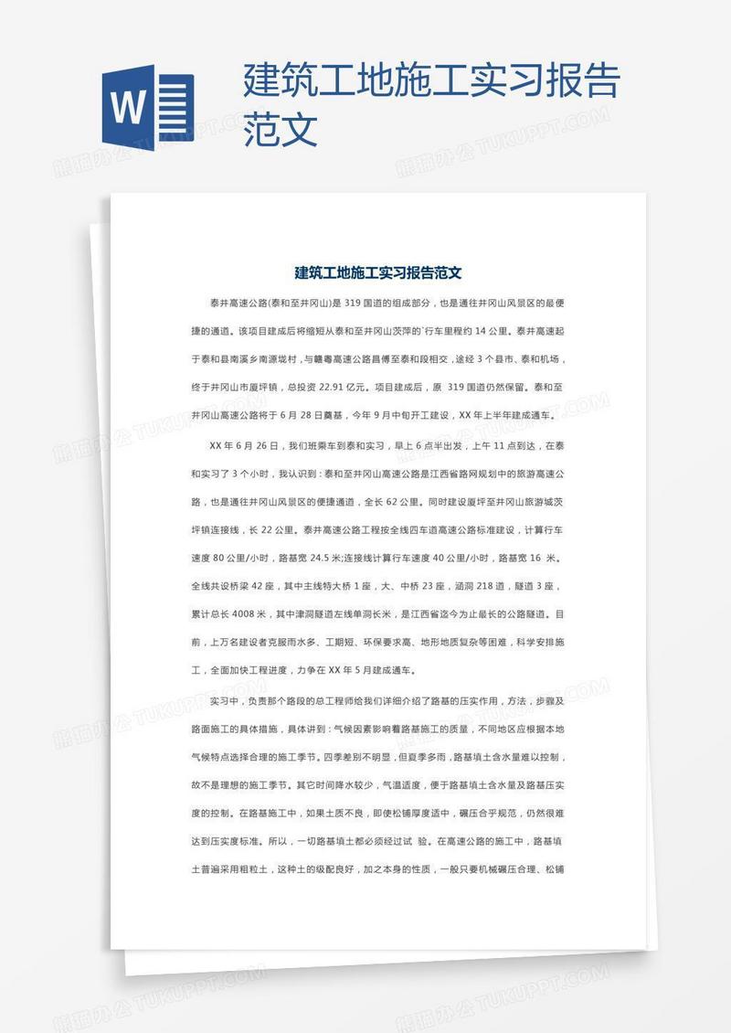 本作品为建筑工地施工实习报告范文, 编号:61874vg669, 格式为 docx, 大小1 MB, 本作品下载后,先解压,解压之后用推荐软件 Word(2010) 打开, 然后进行编辑功能。