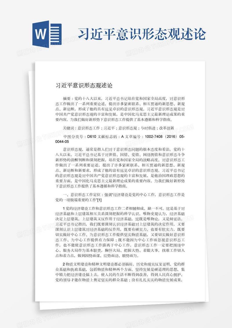 本作品为习近平意识形态观述论, 编号:61874w5689, 格式为 docx, 大小1 MB, 本作品下载后,先解压,解压之后用推荐软件 Word(2010) 打开, 然后进行编辑功能。
