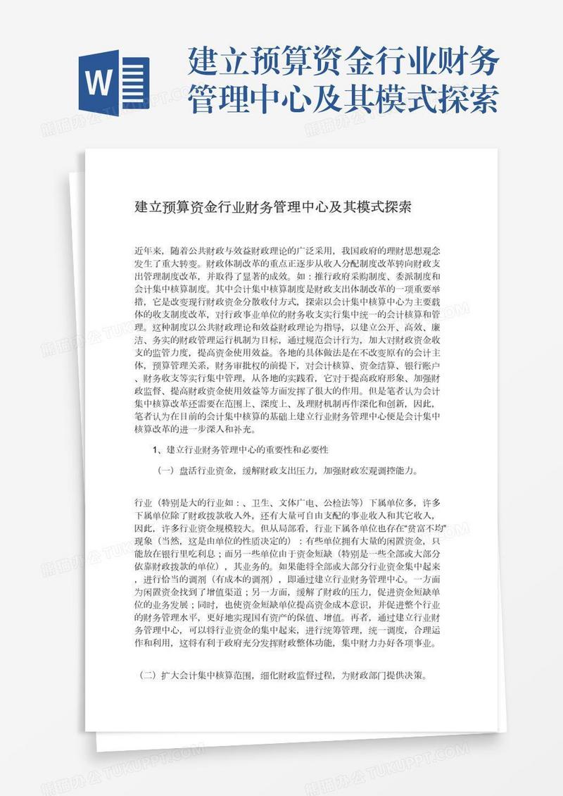 本作品为建立预算资金行业财务管理中心及其模式探索, 编号:6187j4wl59, 格式为 docx, 大小1 MB, 本作品下载后,先解压,解压之后用推荐软件 Word(2010) 打开, 然后进行编辑功能。
