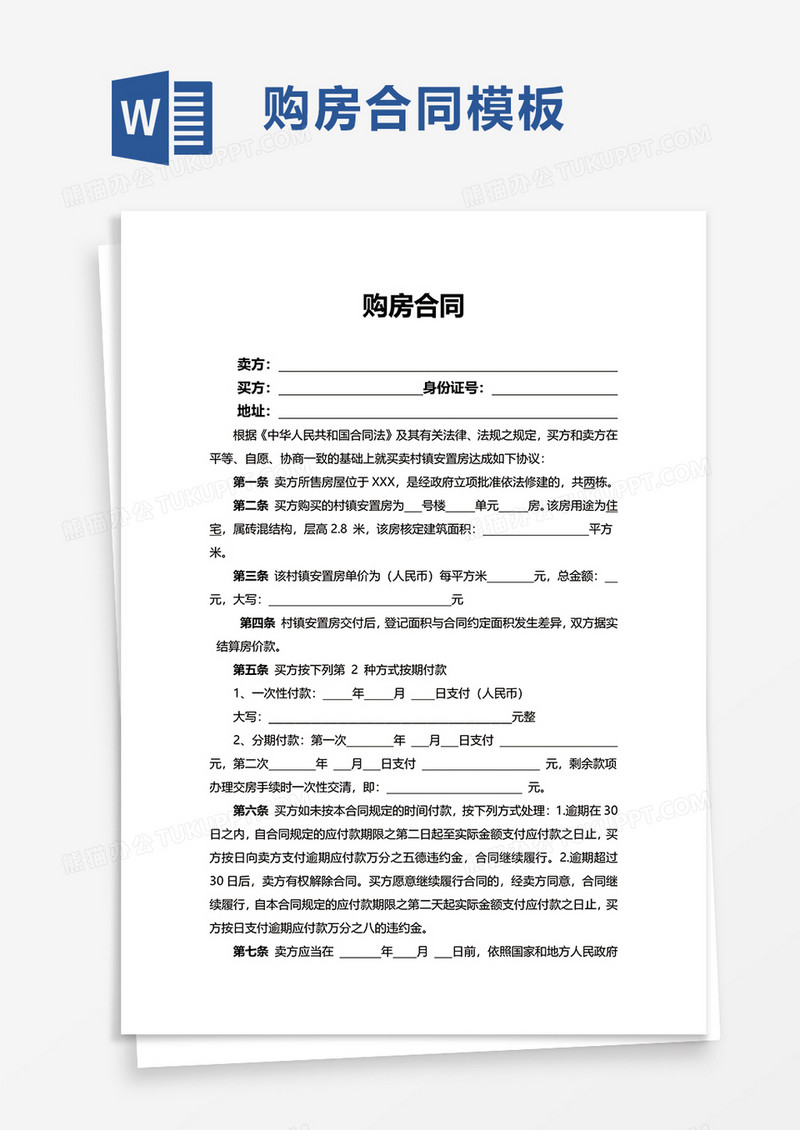 本作品为简单简洁实用购房合同word模板, 编号:6187jbbny9, 格式为 docx, 大小1 MB, 本作品下载后,先解压,解压之后用推荐软件 Word(2019) 打开, 然后进行编辑功能。