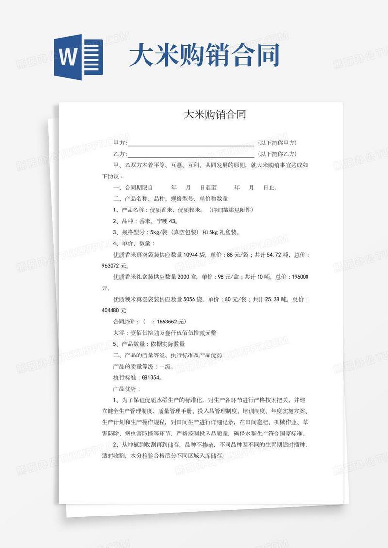 本作品为大米购销合同(完整版), 编号:6187jggw89, 格式为 docx, 大小1 MB, 本作品下载后,先解压,解压之后用推荐软件 Word(2010) 打开, 然后进行编辑功能。