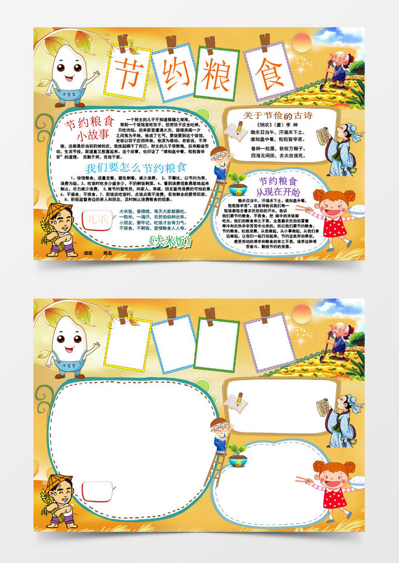本作品为节约粮食珍惜粮食拒绝浪费世界粮食日小报word, 编号:6187rj6y89, 格式为 docx, 大小5 MB, 本作品下载后,先解压,解压之后用推荐软件 Word(2016) 打开, 然后进行编辑功能。