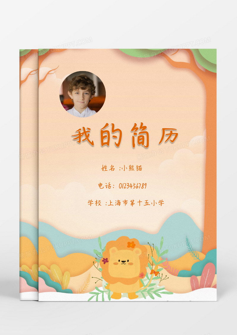 本作品为秋天渐变卡通狮子小升初简历word模板, 编号:6187rvkd79, 格式为 docx, 大小13 MB, 本作品下载后,先解压,解压之后用推荐软件 Word(2019) 打开, 然后进行编辑功能。