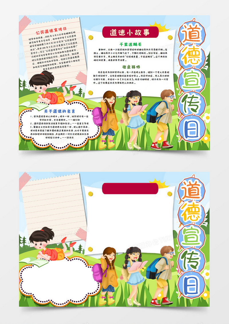 本作品为卡通全民道德宣传日手抄报word模板 , 编号:6187rvwgj9, 格式为 docx, 大小7 MB, 本作品下载后,先解压,解压之后用推荐软件 Word(2019) 打开, 然后进行编辑功能。