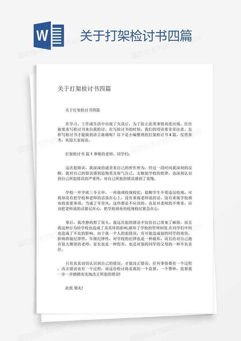 本作品为关于打架检讨书四篇, 编号:6187ry6q79, 格式为 docx, 大小1 MB, 本作品下载后,先解压,解压之后用推荐软件 Word(2010) 打开, 然后进行编辑功能。