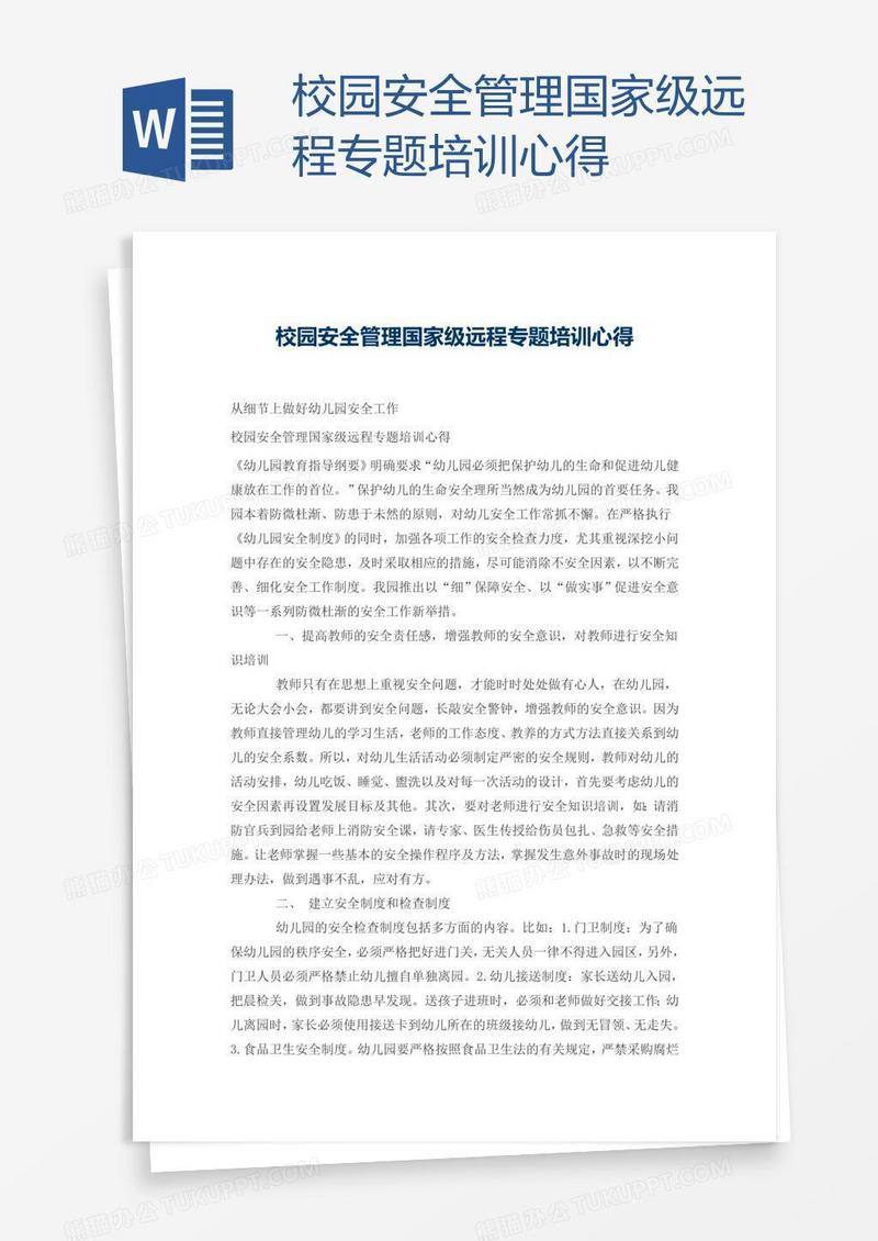 本作品为校园安全管理国家级远程专题培训心得, 编号:71md28nrv1, 格式为 docx, 大小1 MB, 本作品下载后,先解压,解压之后用推荐软件 Word(2010) 打开, 然后进行编辑功能。