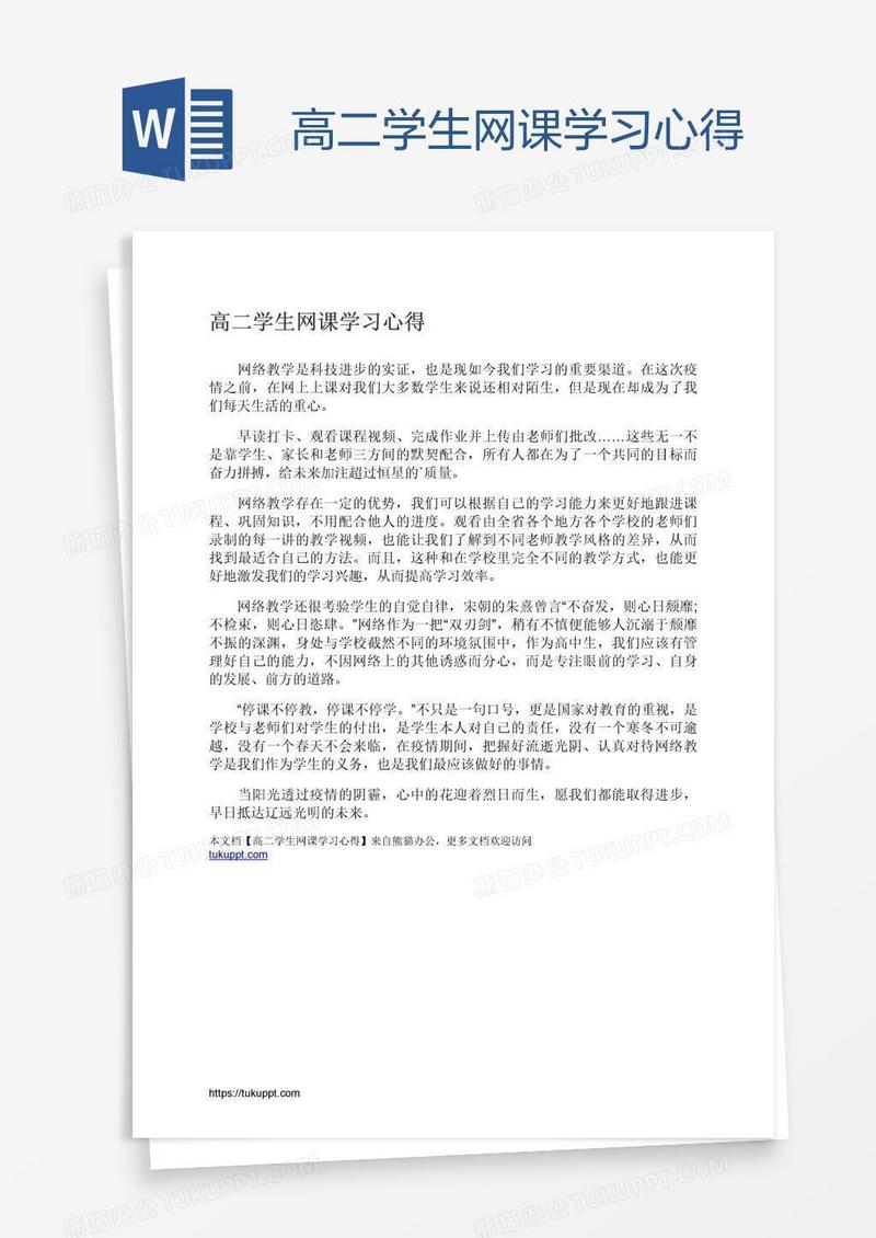 本作品为高二学生网课学习心得, 编号:71md2l7qd1, 格式为 docx, 大小1 MB, 本作品下载后,先解压,解压之后用推荐软件 Word(2010) 打开, 然后进行编辑功能。