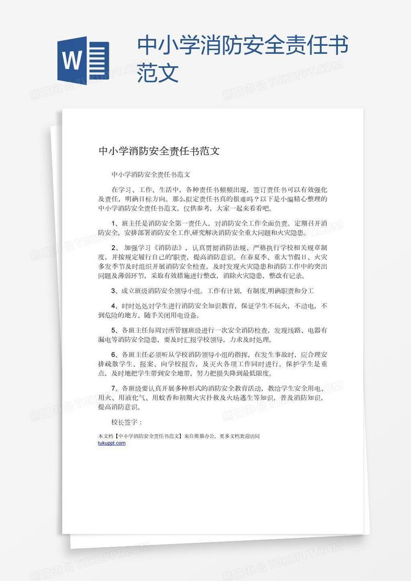 本作品为中小学消防安全责任书范文, 编号:71md2p6gp1, 格式为 docx, 大小1 MB, 本作品下载后,先解压,解压之后用推荐软件 Word(2010) 打开, 然后进行编辑功能。