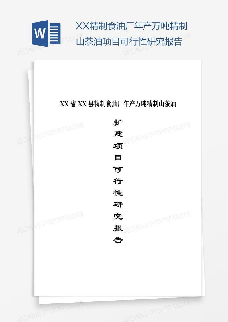 本作品为XX精制食油厂年产万吨精制山茶油项目可行性研究报告, 编号:71md2q52p1, 格式为 docx, 大小1 MB, 本作品下载后,先解压,解压之后用推荐软件 Word(2010) 打开, 然后进行编辑功能。