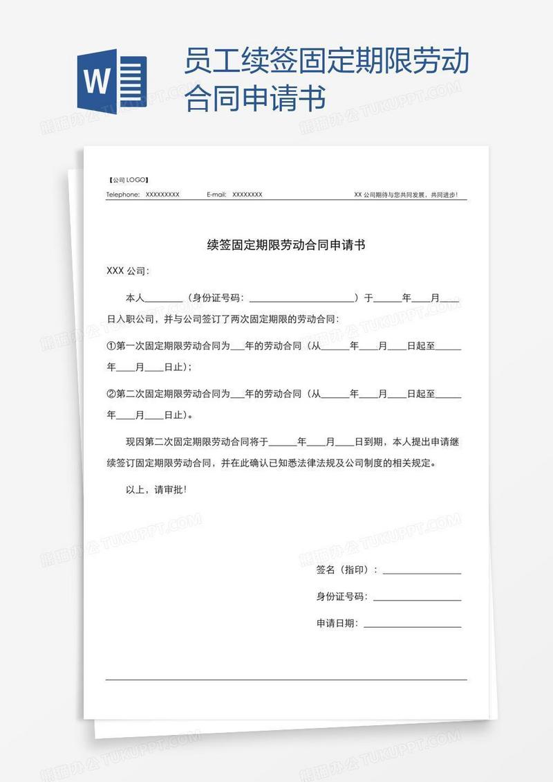 本作品为员工续签固定期限劳动合同申请书, 编号:71md2q87v1, 格式为 docx, 大小1 MB, 本作品下载后,先解压,解压之后用推荐软件 Word(2010) 打开, 然后进行编辑功能。