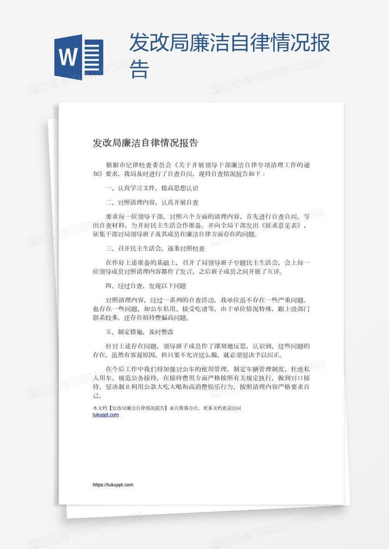 本作品为发改局廉洁自律情况报告, 编号:71mdm3m041, 格式为 docx, 大小1 MB, 本作品下载后,先解压,解压之后用推荐软件 Word(2010) 打开, 然后进行编辑功能。