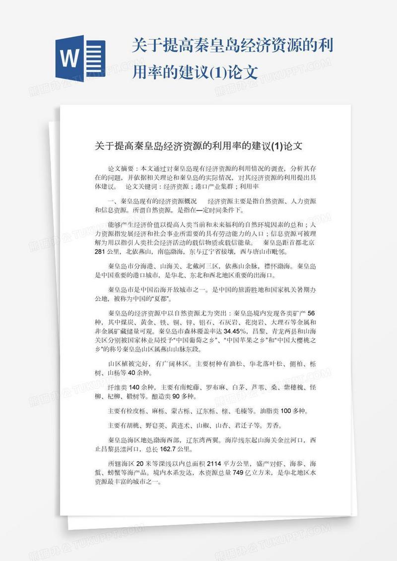 本作品为关于提高秦皇岛经济资源的利用率的建议(1)论文, 编号:71mdm8yno1, 格式为 docx, 大小1 MB, 本作品下载后,先解压,解压之后用推荐软件 Word(2010) 打开, 然后进行编辑功能。