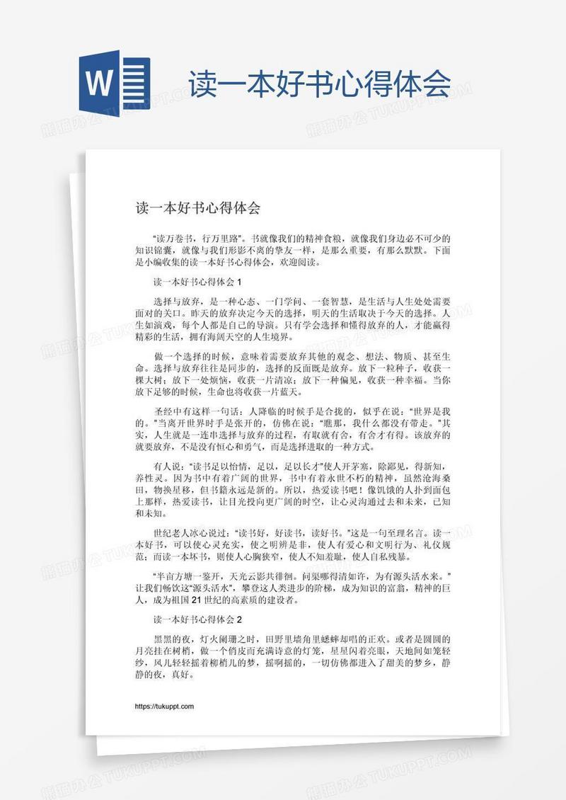本作品为读一本好书心得体会, 编号:71mdmd3kd1, 格式为 docx, 大小1 MB, 本作品下载后,先解压,解压之后用推荐软件 Word(2010) 打开, 然后进行编辑功能。
