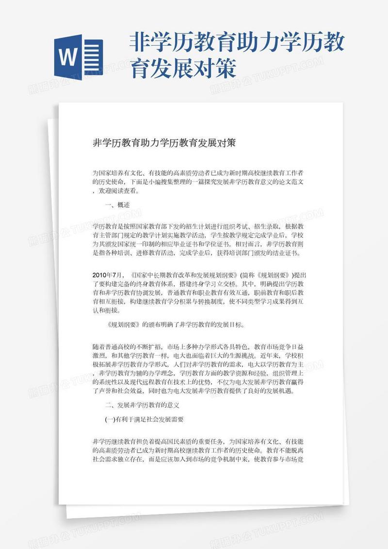 本作品为非学历教育助力学历教育发展对策, 编号:71mdmlq8d1, 格式为 docx, 大小1 MB, 本作品下载后,先解压,解压之后用推荐软件 Word(2010) 打开, 然后进行编辑功能。