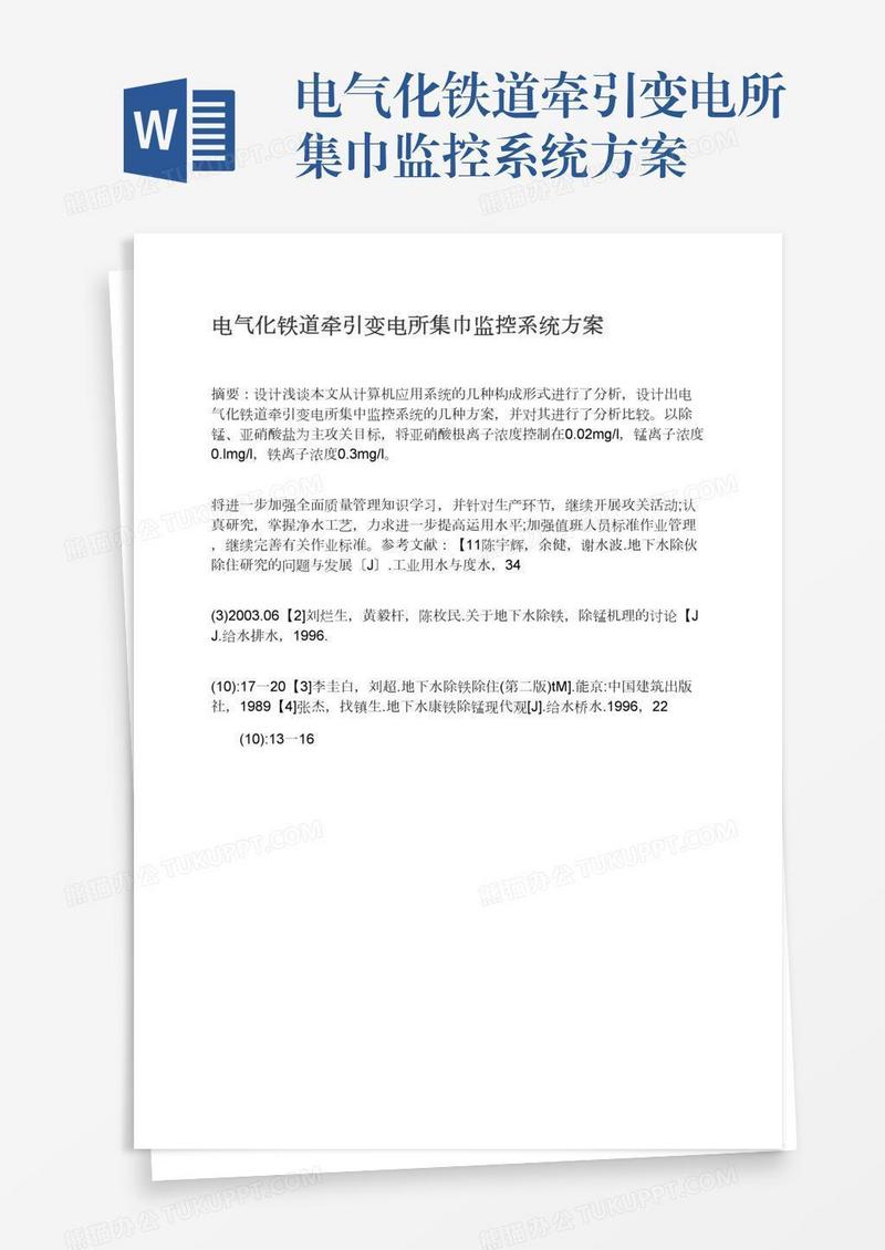 本作品为电气化铁道牵引变电所集巾监控系统方案, 编号:71mdr2e2p1, 格式为 docx, 大小1 MB, 本作品下载后,先解压,解压之后用推荐软件 Word(2010) 打开, 然后进行编辑功能。