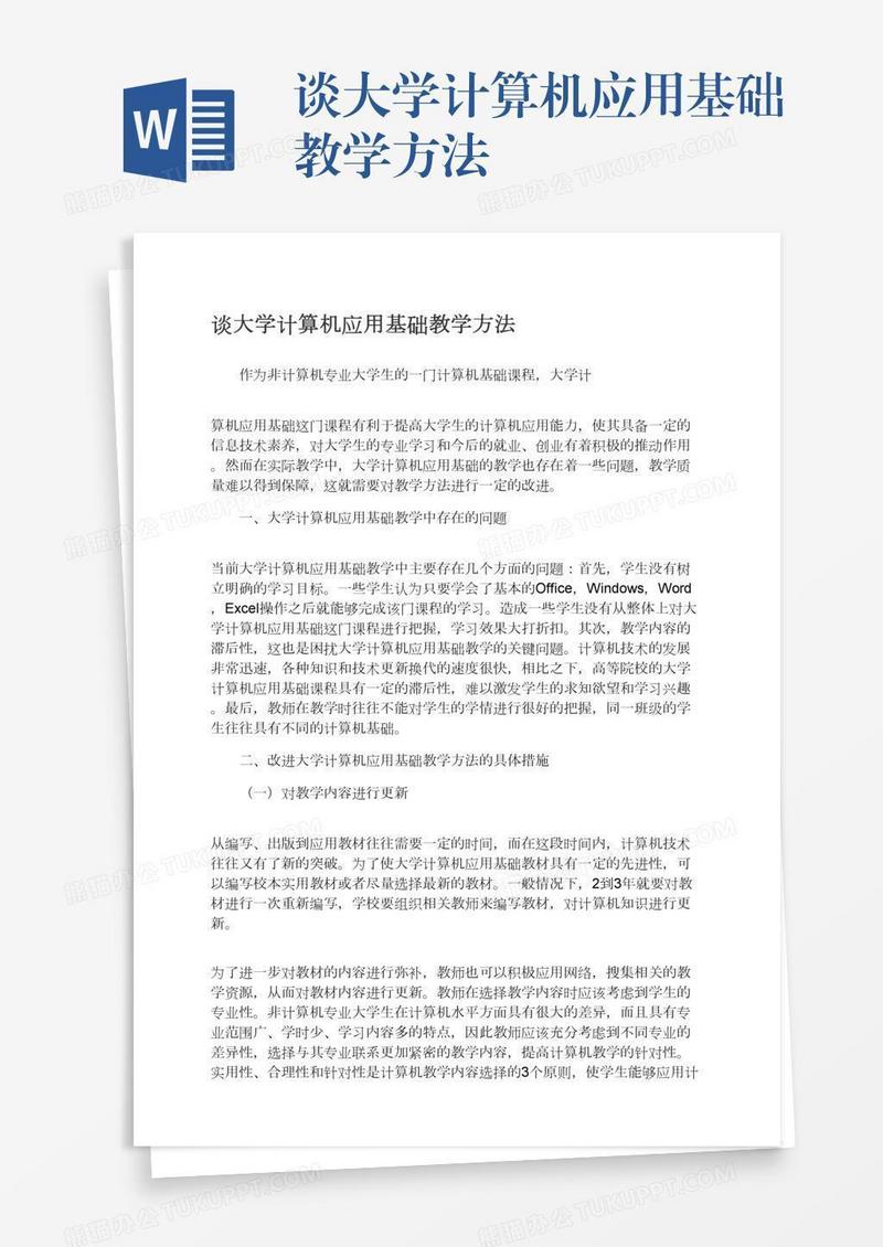 本作品为谈大学计算机应用基础教学方法, 编号:71mdrdwgv1, 格式为 docx, 大小1 MB, 本作品下载后,先解压,解压之后用推荐软件 Word(2010) 打开, 然后进行编辑功能。