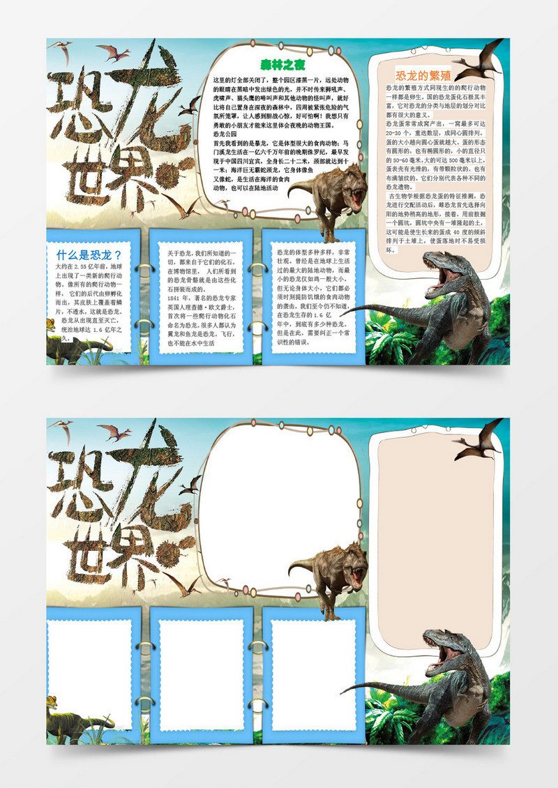 本作品为小学生恐龙世界小报手抄报word模板, 编号:b1qy442o69, 格式为 docx, 大小10 MB, 本作品下载后,先解压,解压之后用推荐软件 Word(2007) 打开, 然后进行编辑功能。
