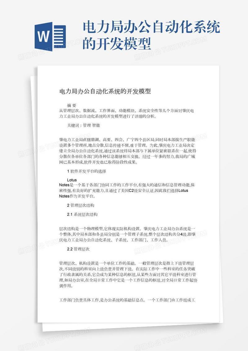 本作品为电力局办公自动化系统的开发模型, 编号:b1qy64bm29, 格式为 docx, 大小1 MB, 本作品下载后,先解压,解压之后用推荐软件 Word(2010) 打开, 然后进行编辑功能。
