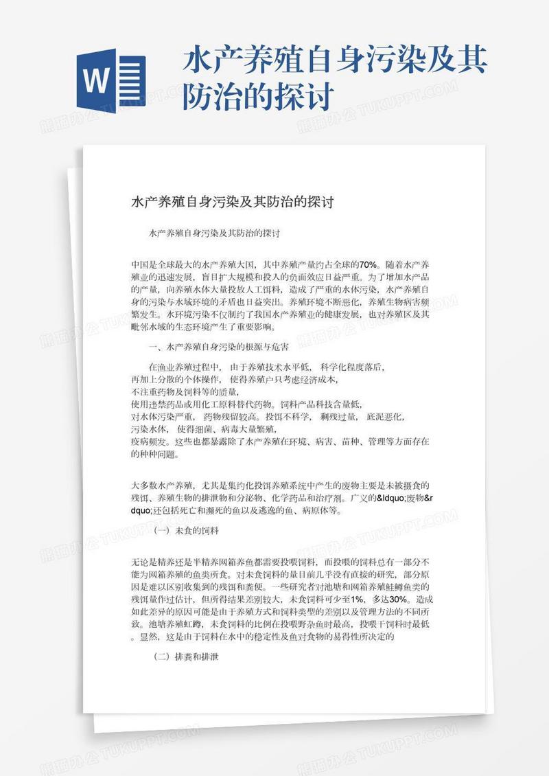 本作品为水产养殖自身污染及其防治的探讨, 编号:b1qy65p0d9, 格式为 docx, 大小1 MB, 本作品下载后,先解压,解压之后用推荐软件 Word(2010) 打开, 然后进行编辑功能。