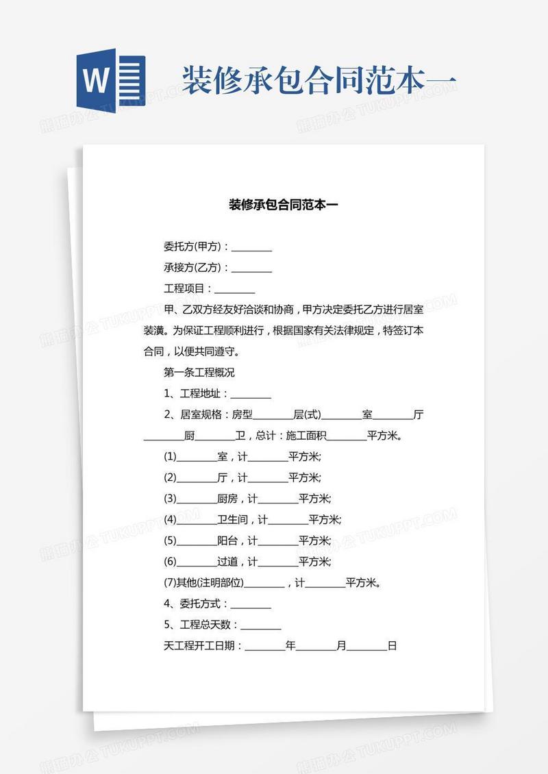 本作品为装修承包合同范本一, 编号:b1qy6l3p79, 格式为 docx, 大小1 MB, 本作品下载后,先解压,解压之后用推荐软件 Word(2010) 打开, 然后进行编辑功能。
