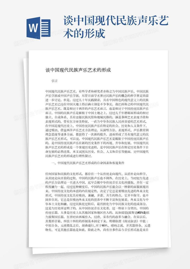 本作品为谈中国现代民族声乐艺术的形成, 编号:b1qy6n5y79, 格式为 docx, 大小1 MB, 本作品下载后,先解压,解压之后用推荐软件 Word(2010) 打开, 然后进行编辑功能。
