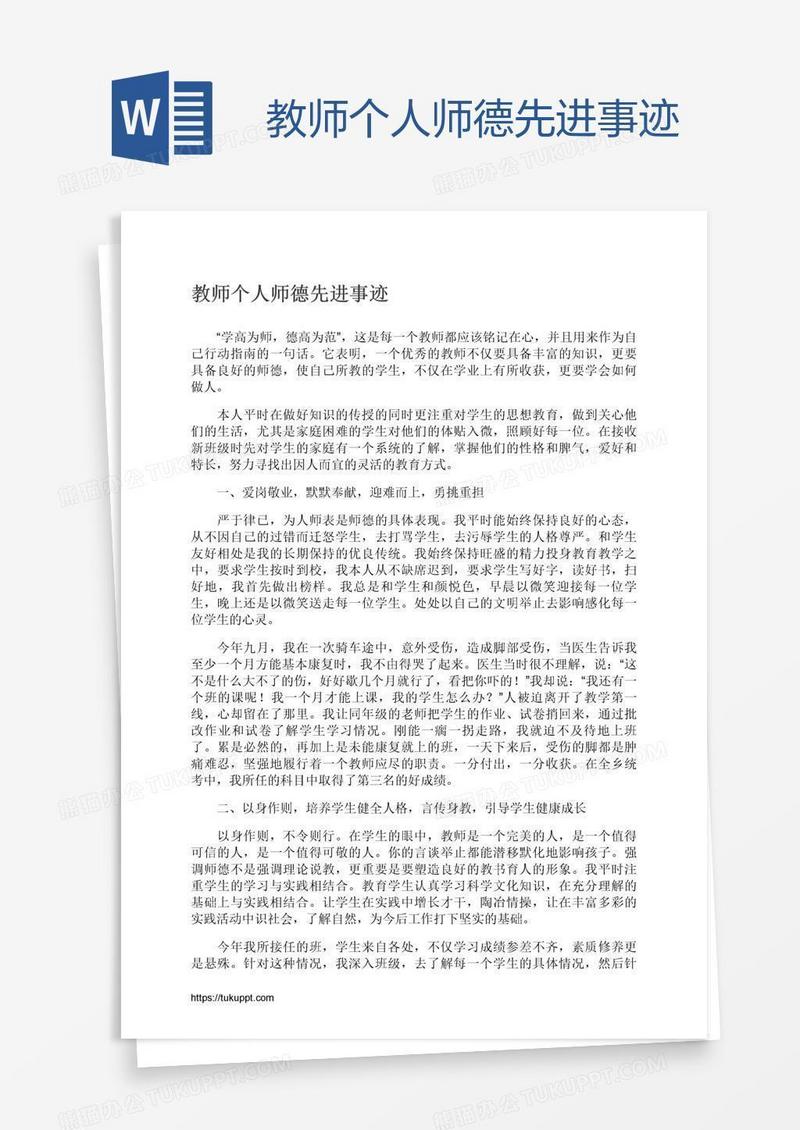 本作品为教师个人师德先进事迹, 编号:b1qyo5g6r9, 格式为 docx, 大小1 MB, 本作品下载后,先解压,解压之后用推荐软件 Word(2010) 打开, 然后进行编辑功能。