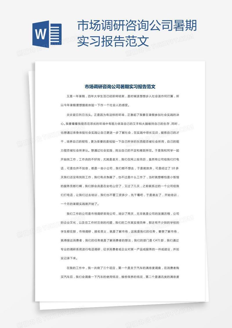 本作品为市场调研咨询公司暑期实习报告范文, 编号:b1qyobpd29, 格式为 docx, 大小1 MB, 本作品下载后,先解压,解压之后用推荐软件 Word(2010) 打开, 然后进行编辑功能。