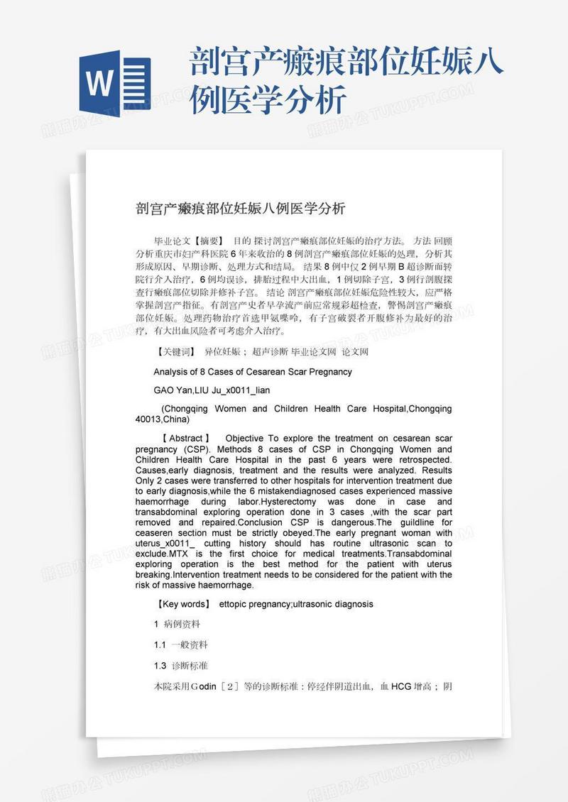 本作品为剖宫产瘢痕部位妊娠八例医学分析, 编号:b1qyognjy9, 格式为 docx, 大小1 MB, 本作品下载后,先解压,解压之后用推荐软件 Word(2010) 打开, 然后进行编辑功能。
