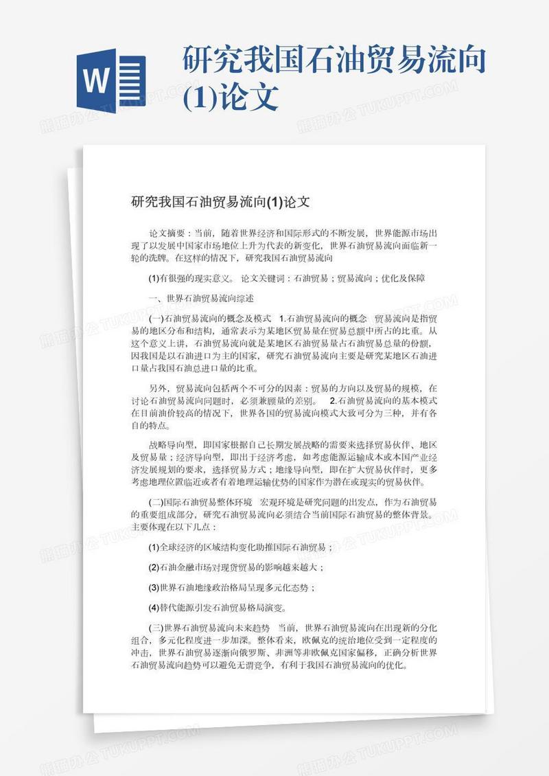 本作品为研究我国石油贸易流向(1)论文, 编号:b1qyomey29, 格式为 docx, 大小1 MB, 本作品下载后,先解压,解压之后用推荐软件 Word(2010) 打开, 然后进行编辑功能。