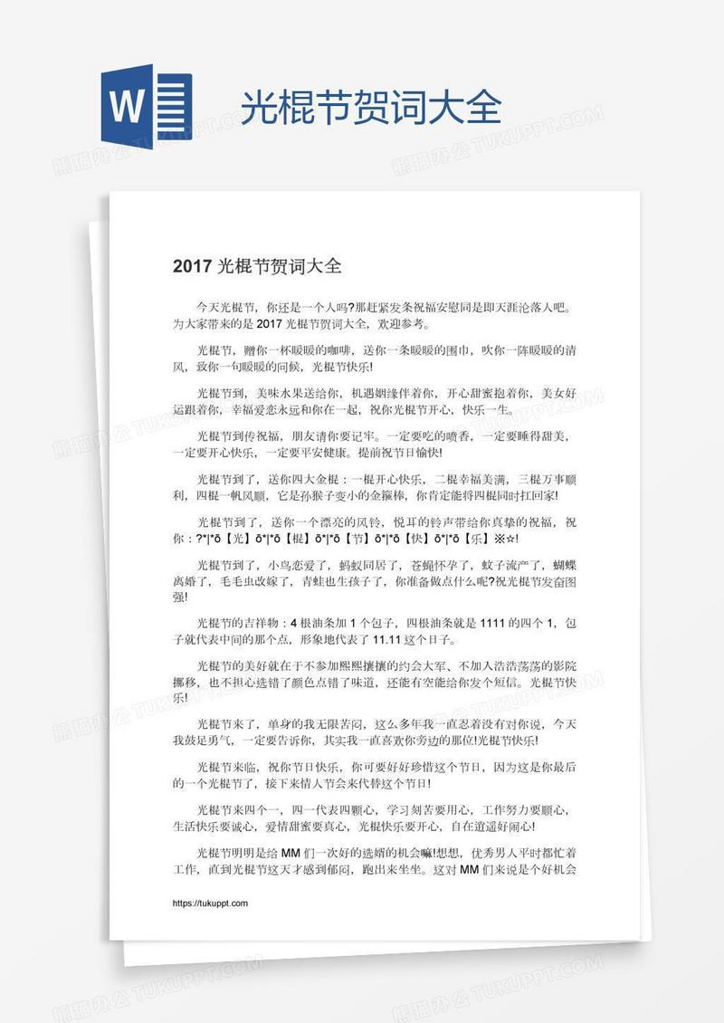 本作品为光棍节贺词大全, 编号:b1qyow50r9, 格式为 docx, 大小1 MB, 本作品下载后,先解压,解压之后用推荐软件 Word(2010) 打开, 然后进行编辑功能。