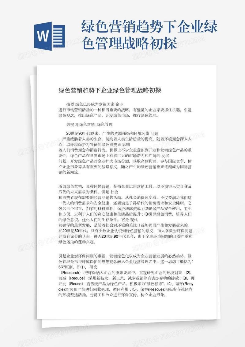 本作品为绿色营销趋势下企业绿色管理战略初探, 编号:bad5kw6oq9, 格式为 docx, 大小1 MB, 本作品下载后,先解压,解压之后用推荐软件 Word(2010) 打开, 然后进行编辑功能。