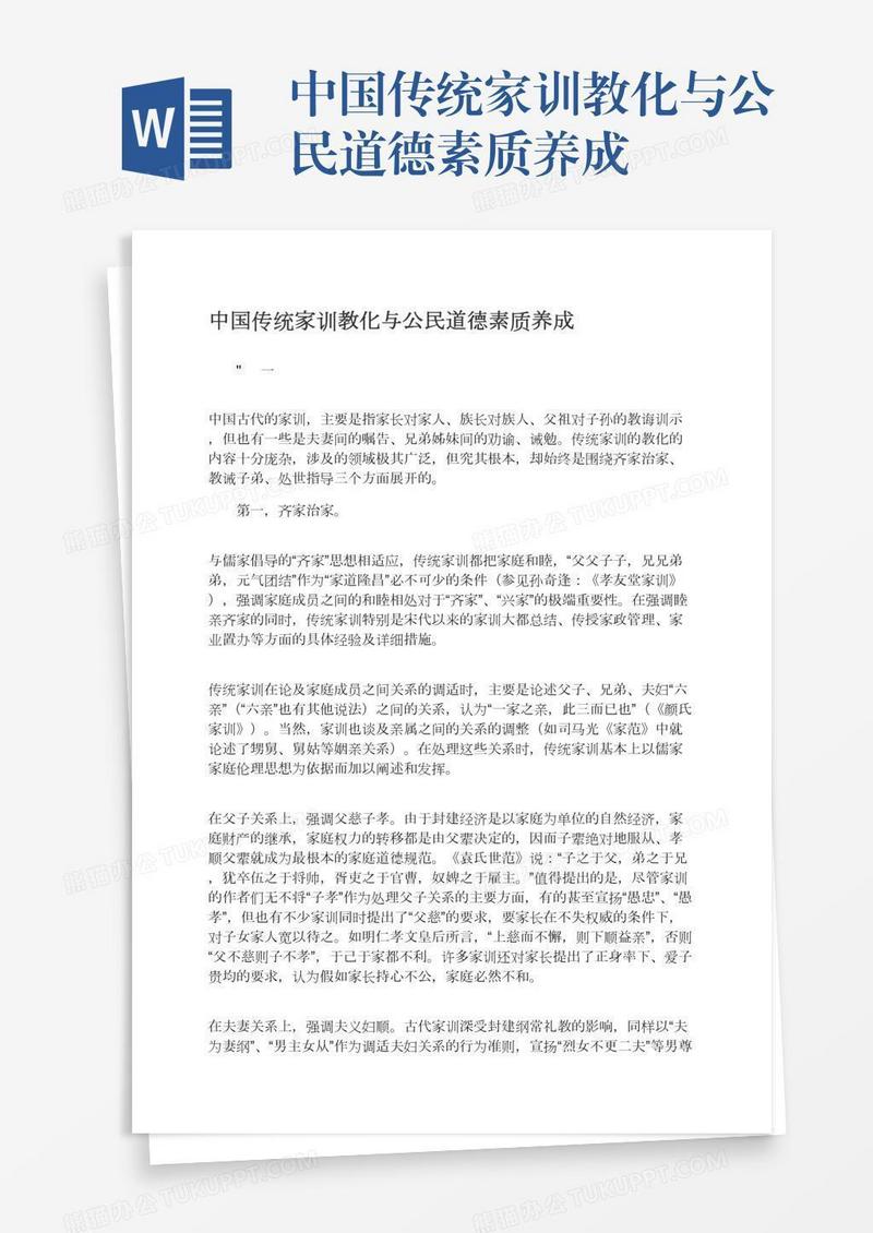 本作品为中国传统家训教化与公民道德素质养成, 编号:bad5kwp8j9, 格式为 docx, 大小1 MB, 本作品下载后,先解压,解压之后用推荐软件 Word(2010) 打开, 然后进行编辑功能。