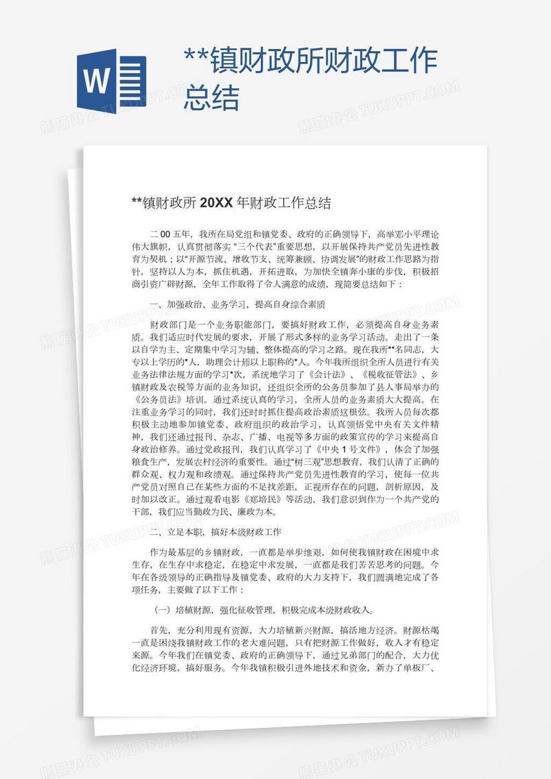 本作品为**镇财政所财政工作总结, 编号:bad5rpll79, 格式为 docx, 大小1 MB, 本作品下载后,先解压,解压之后用推荐软件 Word(2010) 打开, 然后进行编辑功能。