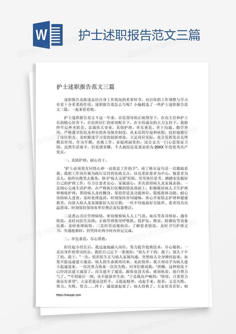 本作品为护士述职报告范文三篇, 编号:bad5w30n79, 格式为 docx, 大小1 MB, 本作品下载后,先解压,解压之后用推荐软件 Word(2010) 打开, 然后进行编辑功能。