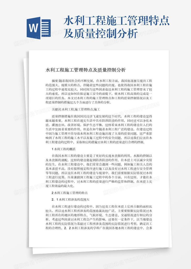 本作品为水利工程施工管理特点及质量控制分析, 编号:bad5w4rmv9, 格式为 docx, 大小1 MB, 本作品下载后,先解压,解压之后用推荐软件 Word(2010) 打开, 然后进行编辑功能。