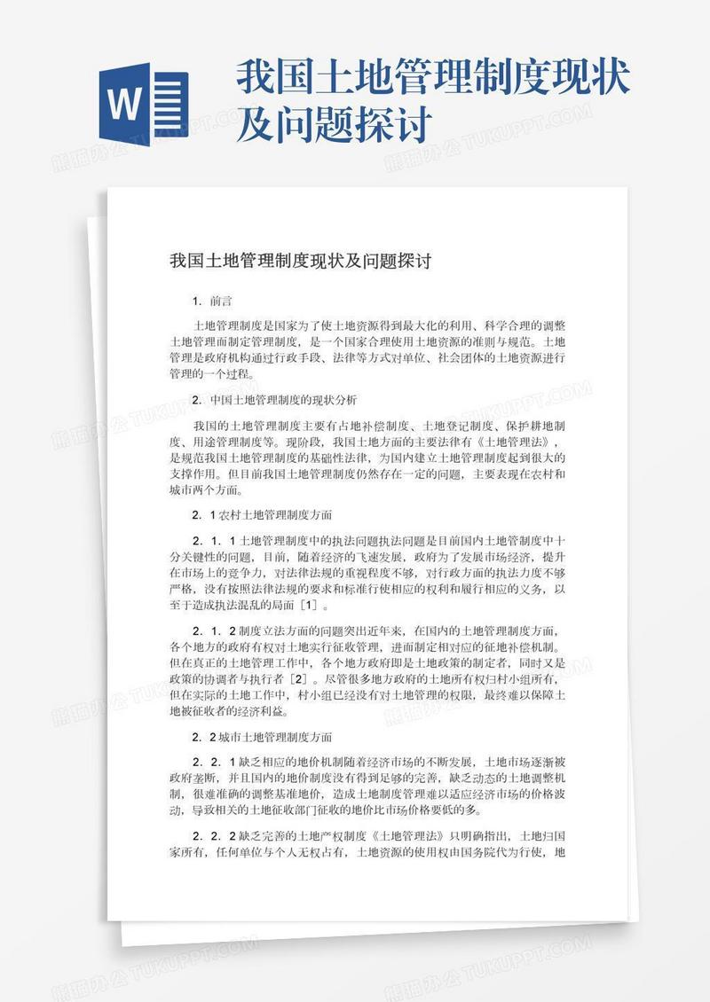 本作品为我国土地管理制度现状及问题探讨, 编号:bad5w4wkv9, 格式为 docx, 大小1 MB, 本作品下载后,先解压,解压之后用推荐软件 Word(2010) 打开, 然后进行编辑功能。