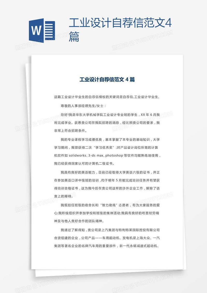 本作品为工业设计自荐信范文4篇, 编号:bad5we48y9, 格式为 docx, 大小1 MB, 本作品下载后,先解压,解压之后用推荐软件 Word(2010) 打开, 然后进行编辑功能。