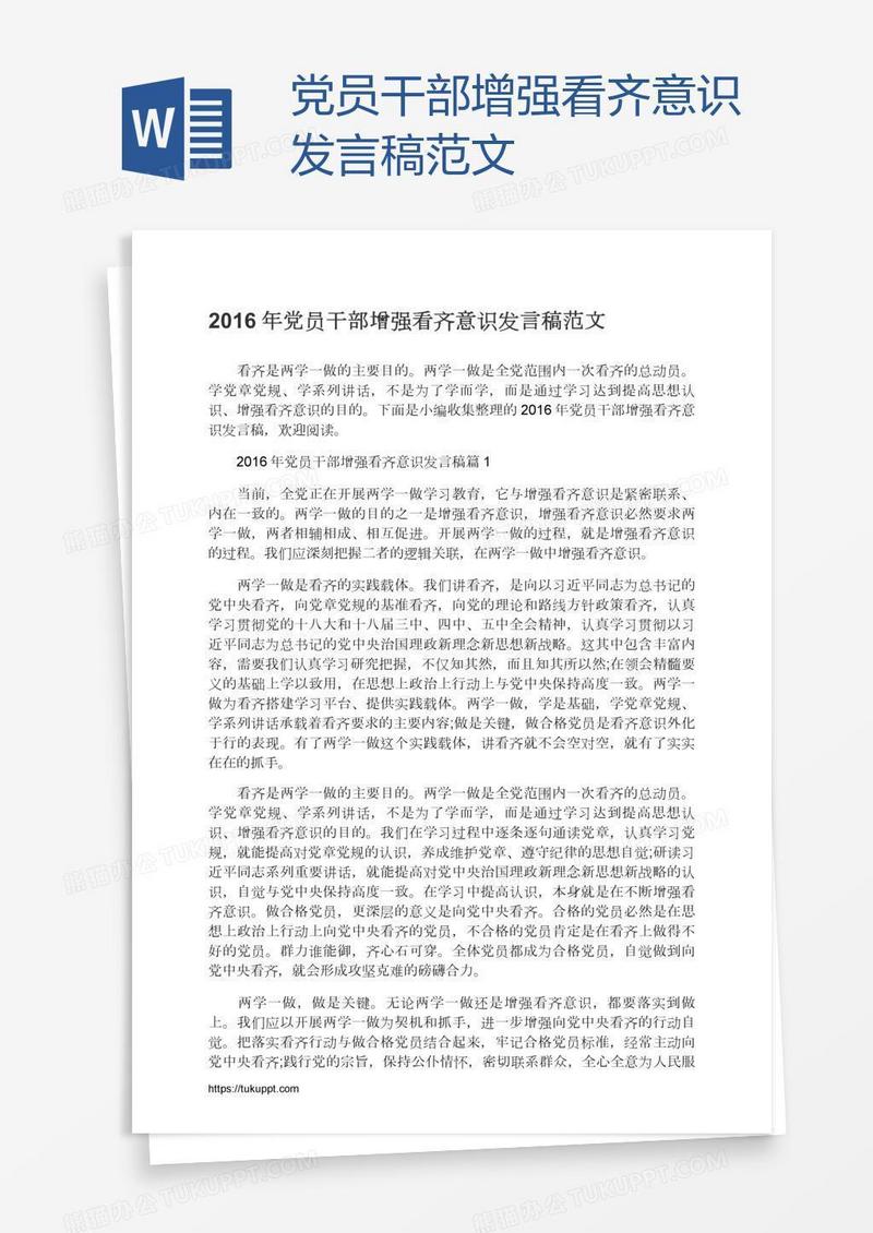 本作品为党员干部增强看齐意识发言稿范文, 编号:bad5wg2yq9, 格式为 docx, 大小1 MB, 本作品下载后,先解压,解压之后用推荐软件 Word(2010) 打开, 然后进行编辑功能。