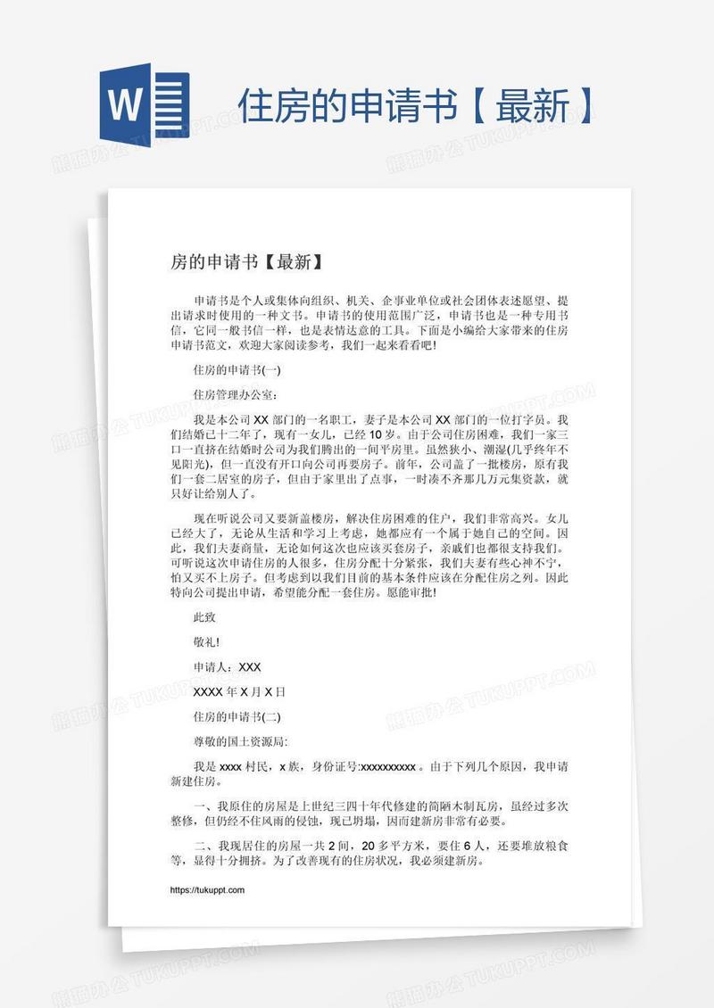本作品为住房的申请书【最新】, 编号:bad5wq68y9, 格式为 docx, 大小1 MB, 本作品下载后,先解压,解压之后用推荐软件 Word(2010) 打开, 然后进行编辑功能。