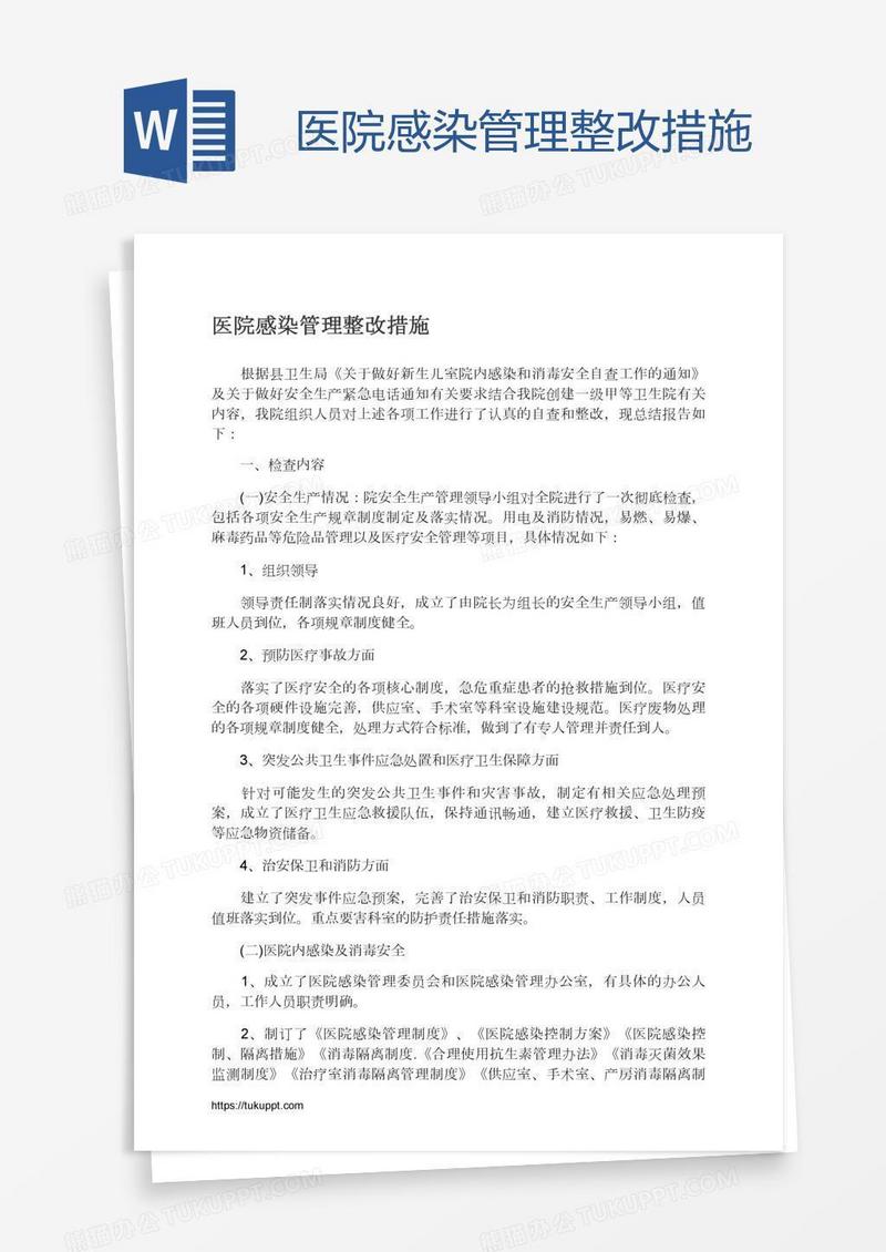 本作品为医院感染管理整改措施, 编号:bad5wrdpj9, 格式为 docx, 大小1 MB, 本作品下载后,先解压,解压之后用推荐软件 Word(2010) 打开, 然后进行编辑功能。
