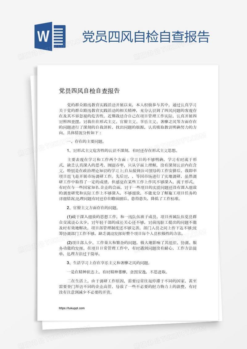本作品为党员四风自检自查报告, 编号:bad5wrjmy9, 格式为 docx, 大小1 MB, 本作品下载后,先解压,解压之后用推荐软件 Word(2010) 打开, 然后进行编辑功能。