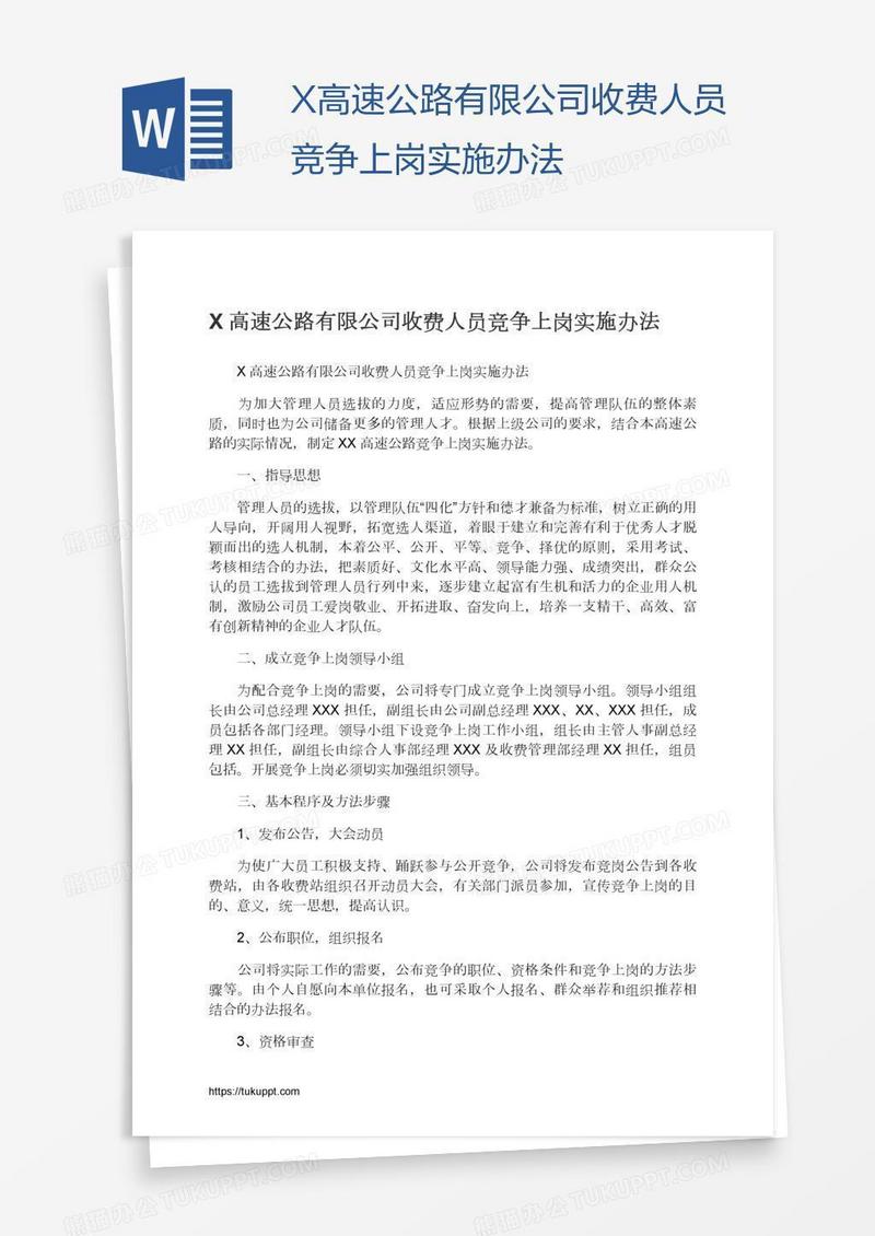本作品为X高速公路有限公司收费人员竞争上岗实施办法, 编号:bad5wy7j79, 格式为 docx, 大小1 MB, 本作品下载后,先解压,解压之后用推荐软件 Word(2010) 打开, 然后进行编辑功能。