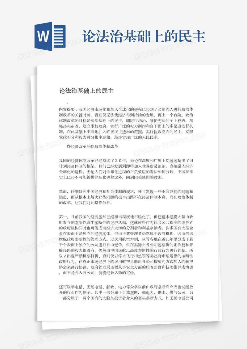 本作品为论法治基础上的民主, 编号:daen7wepra, 格式为 docx, 大小1 MB, 本作品下载后,先解压,解压之后用推荐软件 Word(2010) 打开, 然后进行编辑功能。