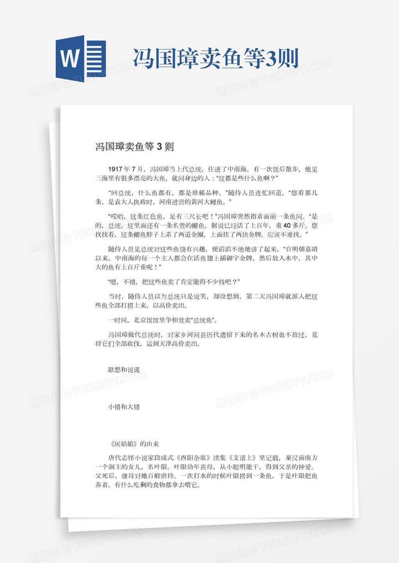 本作品为冯国璋卖鱼等3则, 编号:daenw2g8ra, 格式为 docx, 大小1 MB, 本作品下载后,先解压,解压之后用推荐软件 Word(2010) 打开, 然后进行编辑功能。