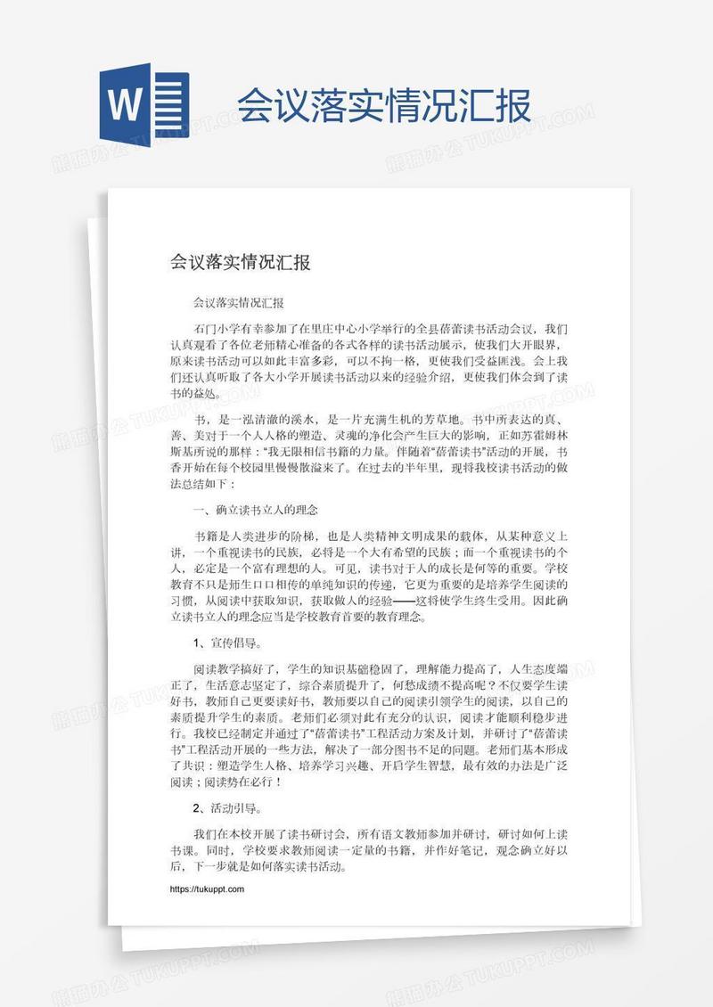 本作品为会议落实情况汇报, 编号:daenw36l2a, 格式为 docx, 大小1 MB, 本作品下载后,先解压,解压之后用推荐软件 Word(2010) 打开, 然后进行编辑功能。