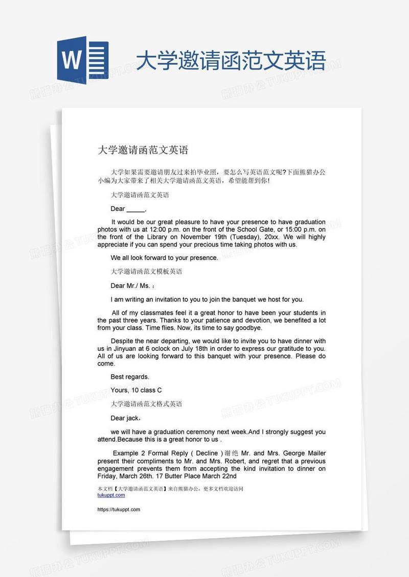 大学邀请函模板英语