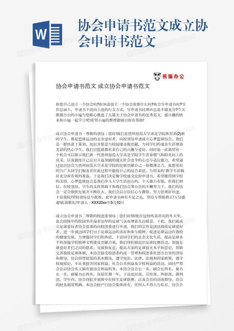 本作品为协会申请书范文成立协会申请书范文, 编号:daenw8rora, 格式为 docx, 大小1 MB, 本作品下载后,先解压,解压之后用推荐软件 Word(2010) 打开, 然后进行编辑功能。